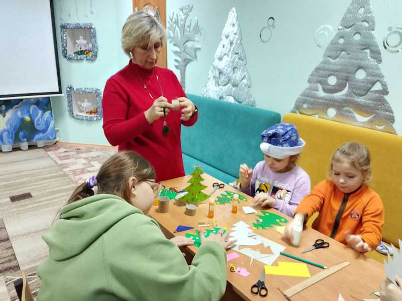 Вот и пролетели новогодние праздники и зимние каникулы, пришла пора отпускать нашу зеленую гостью домой в лес. А чтобы еще немного сохранить новогоднее настроение ребята совместно с воспитателем сделали елочки из картона и украсили их яркими новогодними игрушками.